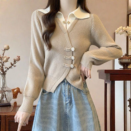 新款針織拼接兩件開衫,秋冬氣質款,慵懶風拿捏,假兩件隨心搭,穿上秒變氛圍感美女!