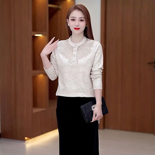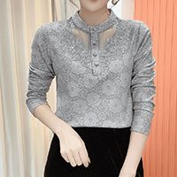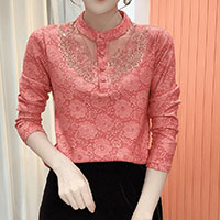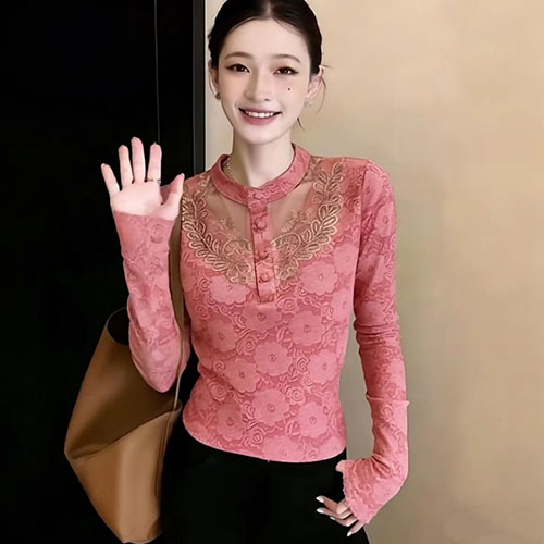 [1] 冬季新款立領蕾絲 氣質百搭長袖減齡加絨打底衫,1入組 NT$1098