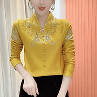 [1] 氣質V領印花加絨打底衫 冬季新款時尚百搭減齡顯瘦衫衣,1入組 NT$1198