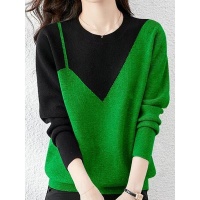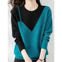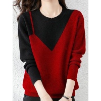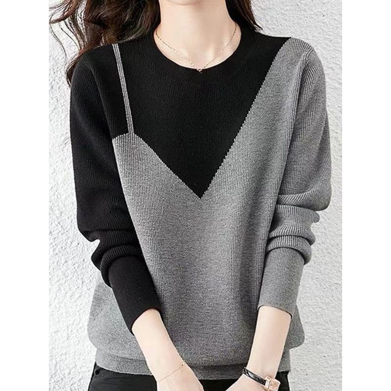 秋冬新款寬鬆顯瘦加絨加厚時尚假兩件撞色圓領針織衫,簡約百搭,不挑身材,不挑年齡,冬天必備!