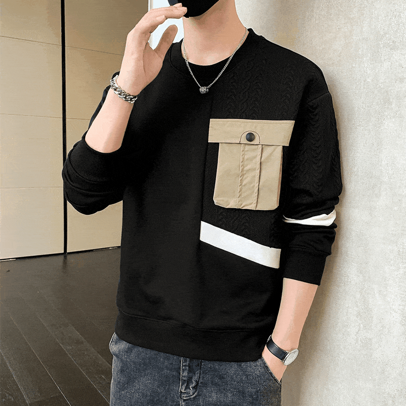 2025新款潮牌加絨體恤,內搭打底衫男裝上衣,春秋季長袖t恤男士衛衣
