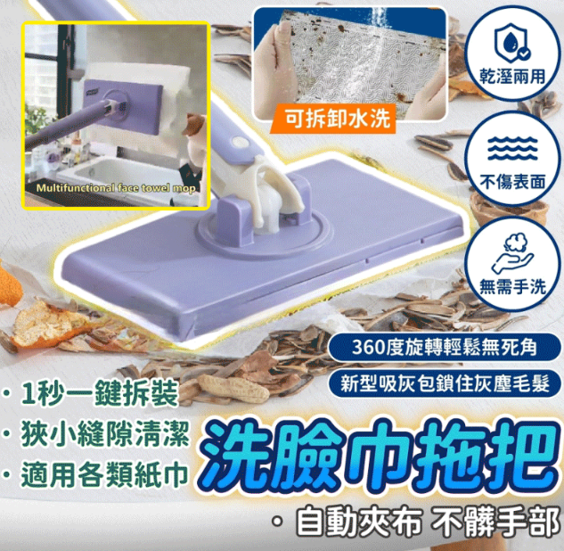 夾布式拖把 拖完換洗更方便,免洗不髒手,破布紙巾環保再利用,省錢又省力,家務清潔更輕鬆~