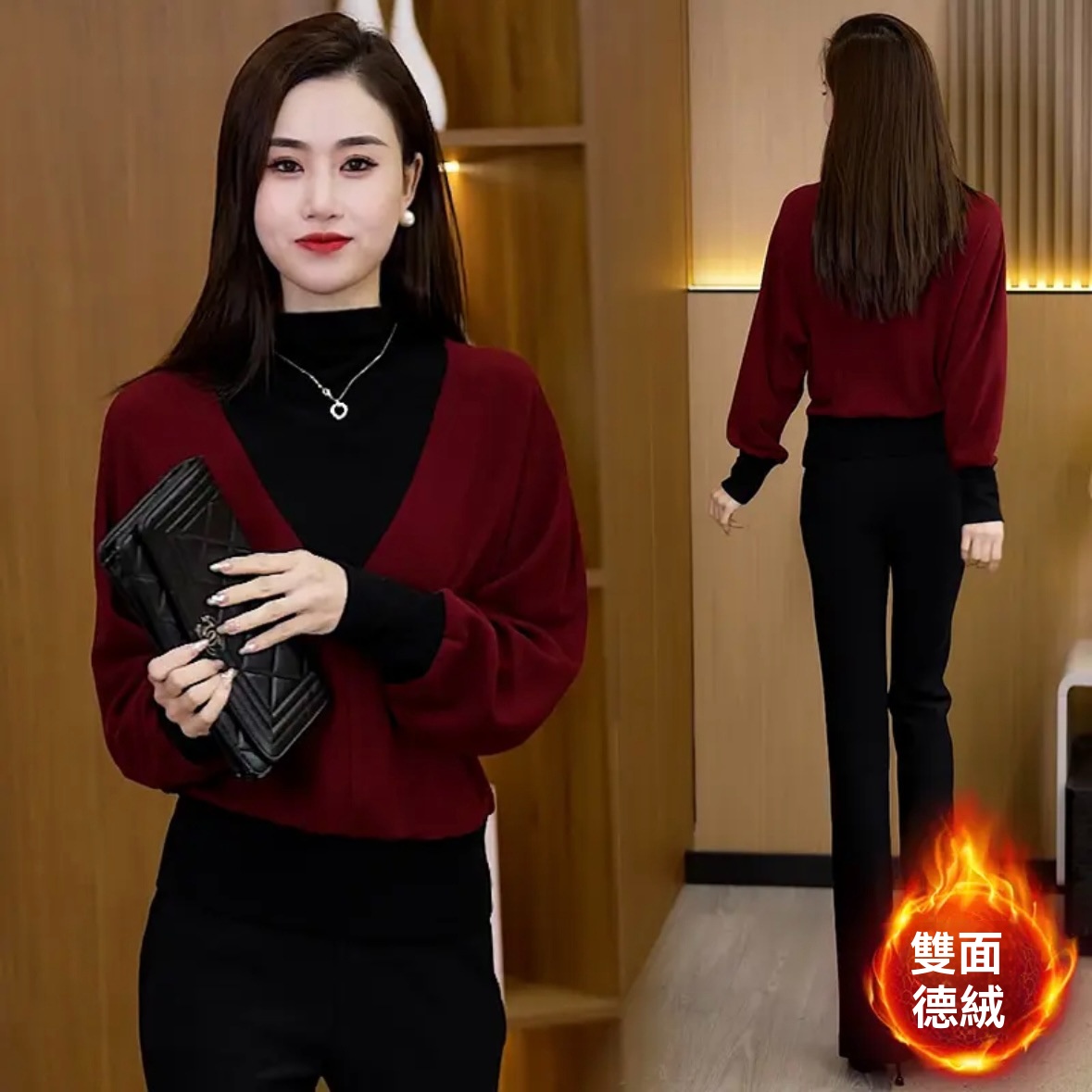 德絨暖感暴擊!假兩件高領打底,一件抵兩件! 高領鎖溫護頸,拼接設計自帶層次感,不用疊穿也時髦~ 親膚柔軟,遮肉藏腰腹,一件穿遍秋冬!